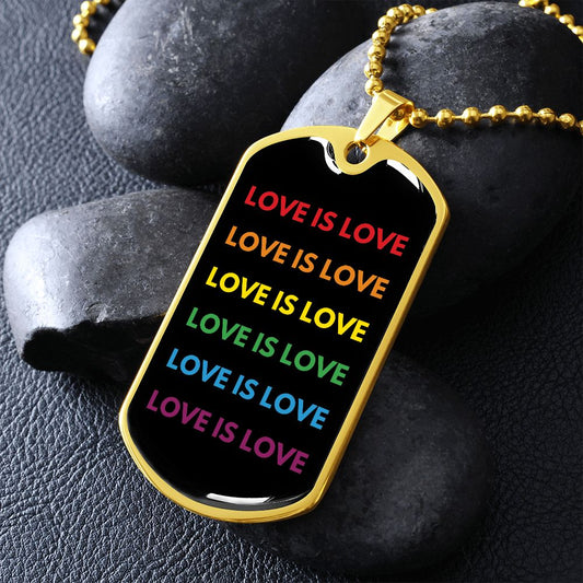 Love Is Love Dog Tag Necklace | Gay Pride Rainbow Necklace
