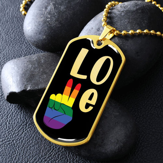 Love & Peace Dog Tag Necklace | Gay Pride Heart Pendant Necklace