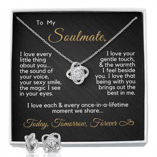 Gift for Soulmate | Today, Tomorrow, Forever | Love Knot Necklace & Earrings Set