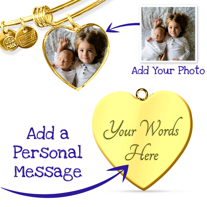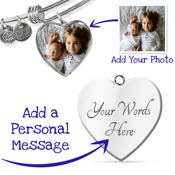 Simply upload your photo and you'll instantly see what you original, personalized bracelet is going to look like. You can even customize it further by having a special message engraved on the back of the pendant. Give Mom the custom gift that she will treasure forever.