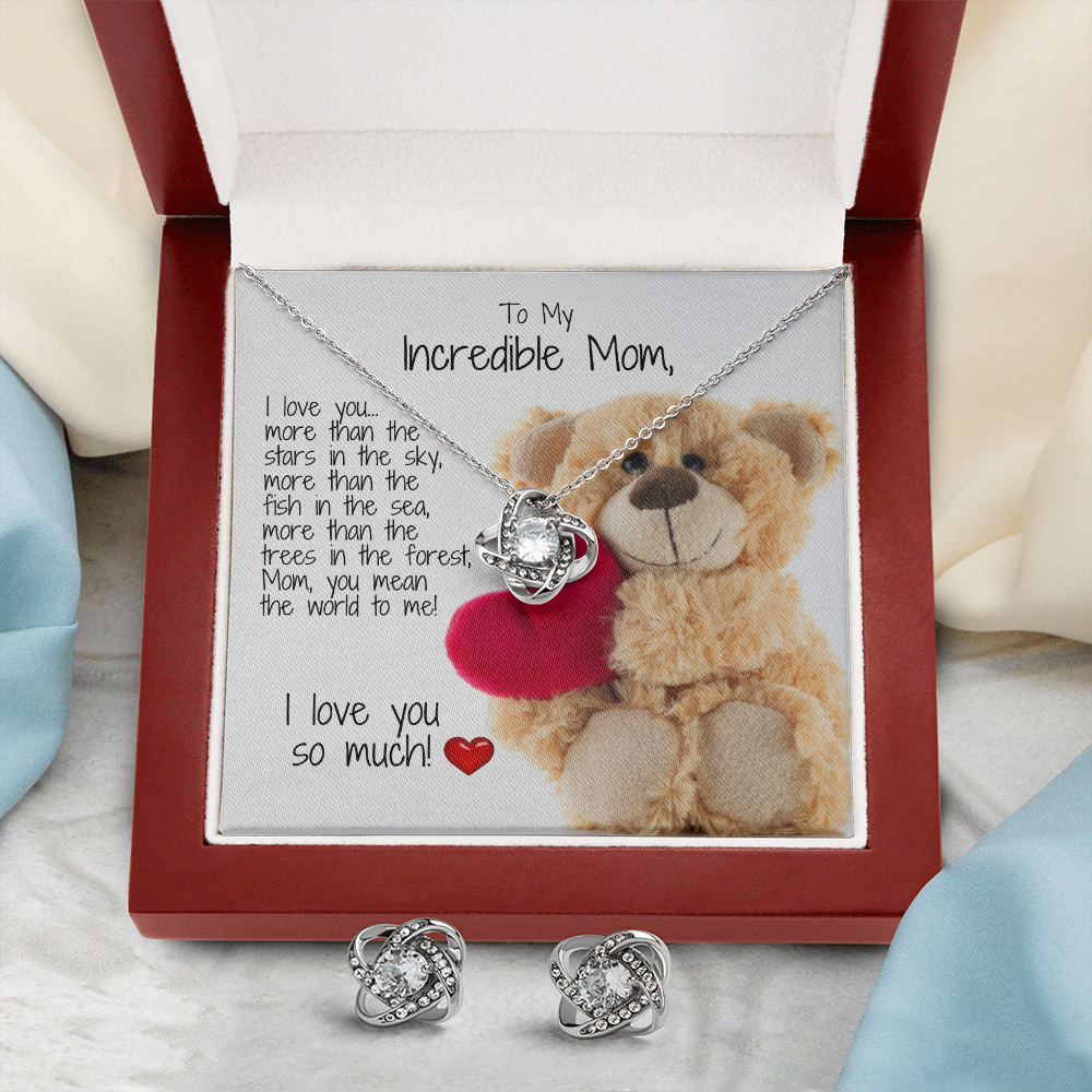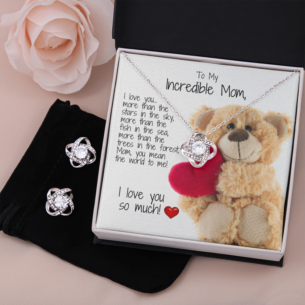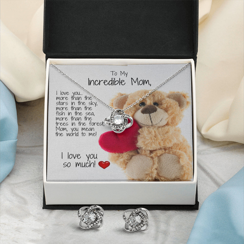 Surprise your loved one with this gorgeous Love Knot Earring & Necklace Set!